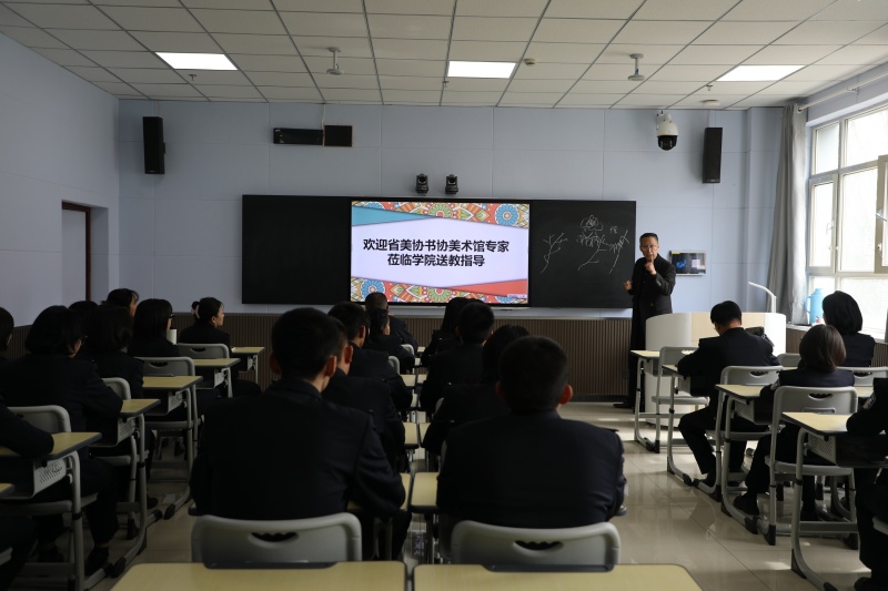 为深入贯彻习近平总书记关于弘扬雷锋精神的重要指示,深化校馆文化共建。3月18日下午,我院联合青海省美术家协会、青海省书法家协会、青海美术馆共同开展“雷锋精神永传承,翰墨丹青润警心”学雷锋志愿服务活动。省美协、省书协、省美术馆文艺志愿者走进警院,以艺术传递奉献精神,用笔墨浸润学子心灵,为春日的校园增添了浓郁的文化气息。传雷锋精神火种,开美育讲座新篇。活动特邀青海省政协委员、政协书画室副主任、青海画院副院长、青海省美术家协会理事刘建宁等专业美术教师,围绕美术基础与审美主题开展公益讲座。刘建宁老师从绘画技法、色彩运用到作品鉴赏,系统讲解美术核心知识,将艺术审美与警营精神深度融合,以生动案例引导师生在笔墨丹青中感悟忠诚担当,为警校师生搭建起艺术交流与精神滋养的平台,助力大家在专业学习之余提升审美情趣与文化素养。挥毫泼墨寄忠诚,义写义赠暖警营。书画创作现场氛围热烈,刘建宁老师与省文联美术家协会、书法家协会的艺术家们、志愿者们,同学院师生携手挥毫,笔走龙蛇、墨香四溢,共同创作美术、书法作品。刘建宁老师以深厚的书画功底创作多幅精品力作,与其他艺术家的作品一同让翰墨之美浸润警营。同时,美协还向我院赠送